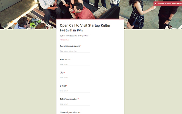 Заявка на участие: Фестиваль «Культура Стартапа» в Киеве